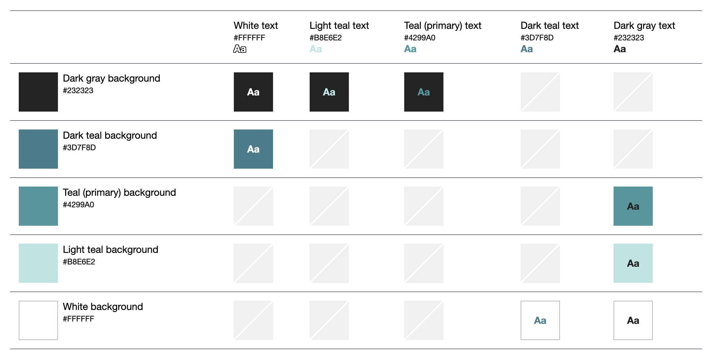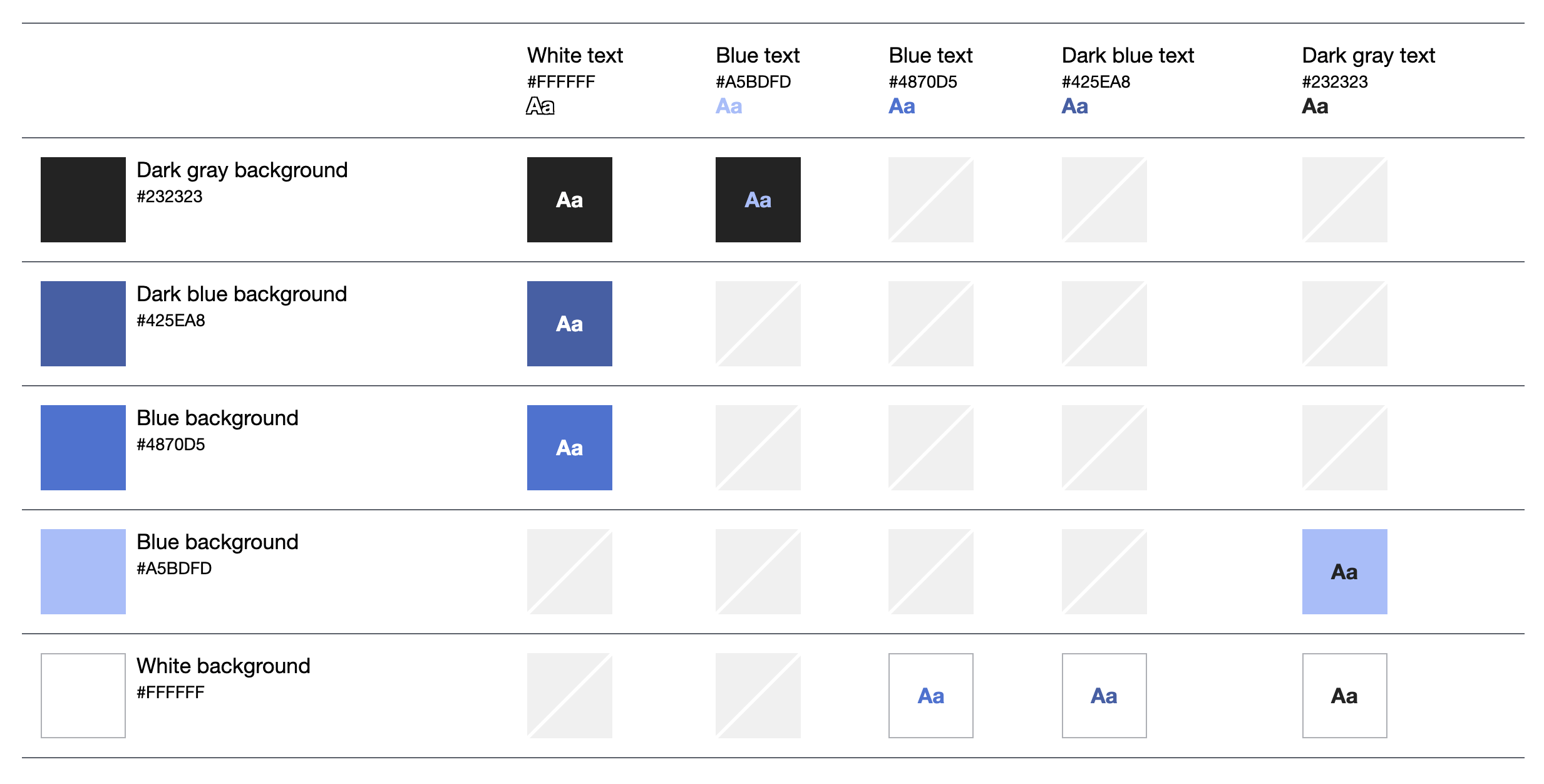 Please don’t use these color combinations; they do not meet a color contrast ratio of 4.5:1, so they do not conform with the WCAG standards for body text. This means that some people would have difficulty reading the text. Employing accessibility best practices improves the user experience for all users. (GitHub Accessible Color Matrix)